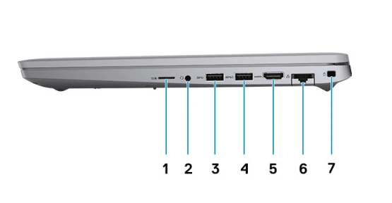 I/O Ports and Connectors: SD Card Reader (SD, SDHC, SDXC, supporting up to 2TB), 1 x Thunderbolt 3, 2 x USB 3.0 with PowerShare, 1 x Headphone and microphone combo jack, 1 x HDMI, 1 x battery life indicator