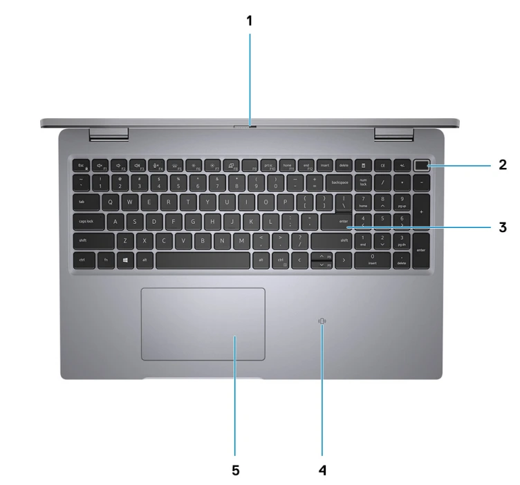 1. Privacy shutter 2. Power button with fingerprint readerβ€”(optional)