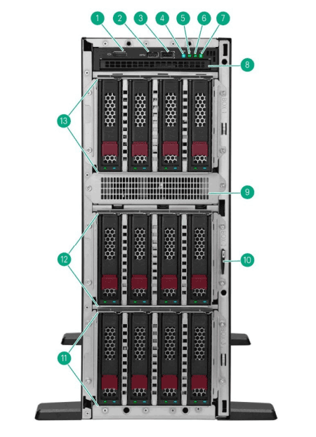 | 9. | iLO management port | 10. | USB 3.2 Gen 1 ports x2 |