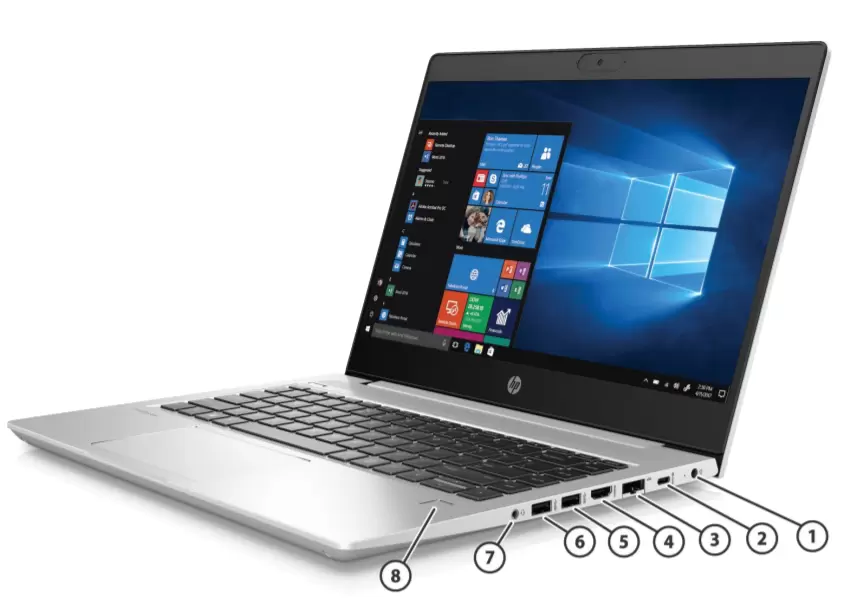 | 7. | Headphone/Microphone Combo Jack | 8. | HP Fingerprint Sensor (select models) |