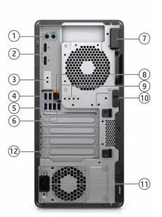 | 10. | Release latch | 11. | Power connector | 12. | Type-C Thunderbolt 3 port (optional) | |