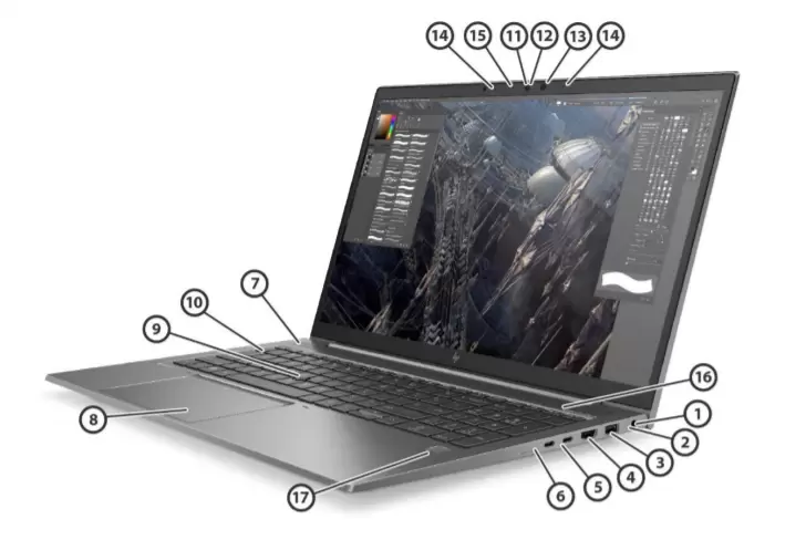 | 12. | HP Privacy Camera Shutter | 13. | Multi array microphone | 14. | Webcam LED |