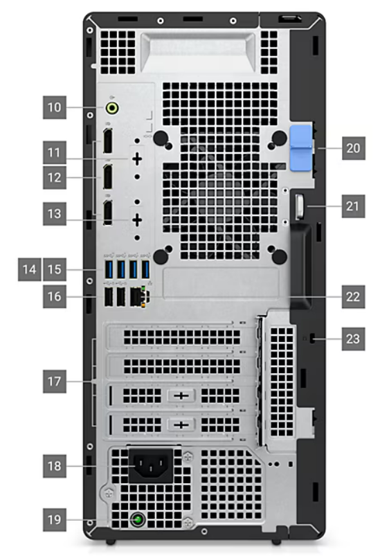 | 12. | 3x DisplayPort 1.4a Ports (each up to 4096 x 2304 @60Hz) | 13. | Video Port (optional) HDMI 2.1: up to 4096 x 2160 @60Hz DisplayPort 1.4a: up to 5120 x 3200 @60Hz VGA: up to 1920 x 1200 @60Hz USB Type-C with DisplayPort Alt mode: up to 5120 x 3200 @60Hz |