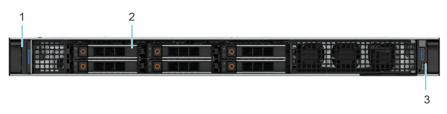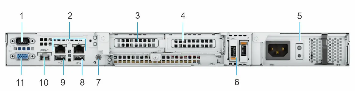 8. USB 3.2 Gen1 port 9. USB 2.0 port 10. Dedicated iDRAC Ethernet