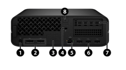 | 1. | Power connector | 2. | 2 DisplayPort™ 1.4 |