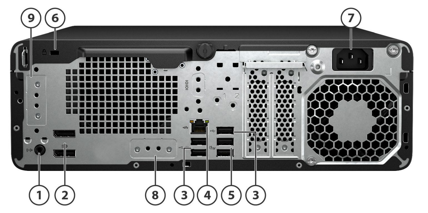 | 1. | Audio line in/ line out | 2. | 2 DisplayPort 1.4 ports |