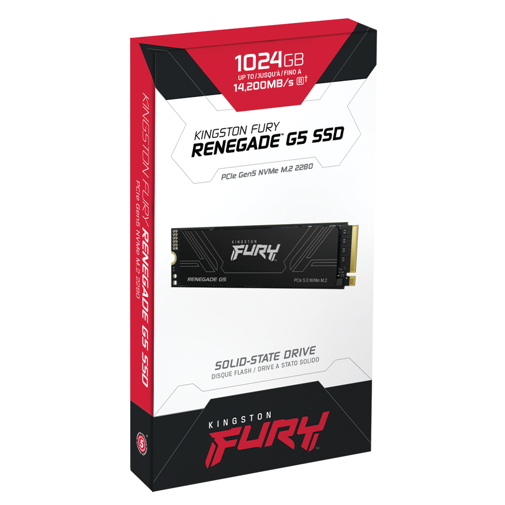 Unleash the full potential of your system with Kingston FURY Renegade G5 PCIe 5.0 NVMe M.2 SSD. By leveraging the latest PCIe Gen5 x4 controller and 3D TLC NAND, Kingston FURY Renegade G5 SSD offers extreme speeds of up to 14,800/14,000MB/s read/write1.
